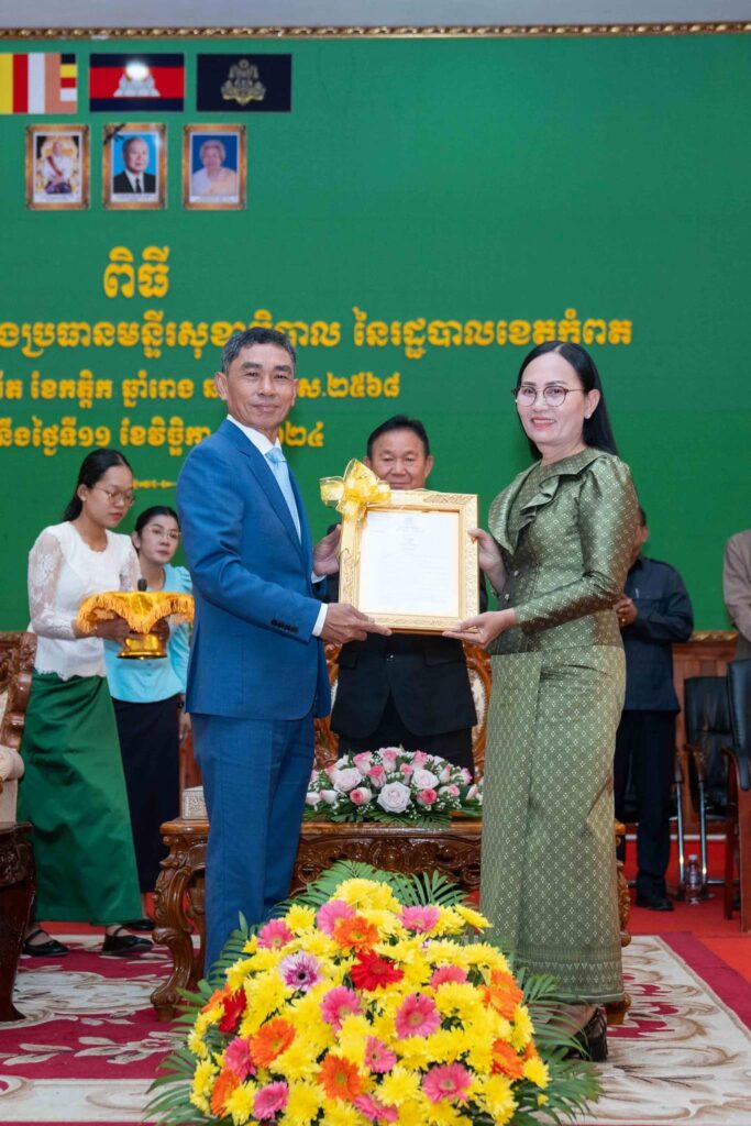 នៅរសៀលថ្ងៃទី១១ ខែវិច្ឆិកា ឆ្នាំ២០២៤ ឯកឧត្តម ម៉ៅ ធនិន អភិបាលនៃគណៈអភិបាលខេត្តកំពត និង ឯកឧត្តម តាក ហាប់ ប្រធានក្រុមប្រឹក្សាខេត្ត បានអញ្ជើញចូលរួមក្នុងពិធីប្រកាសចូលកាន់មុខតំណែងប្រធានមន្ទីរសុខាភិបាលខេត្តកំពតថ្មី នៅសាលសន្និសីទបូកគោសាលាខេត្តកំពត ក្រោមអធិបតីភាពឯកឧត្តម វេជ្ជបណ្ឌិត ឡូ វាសនាគីរី រដ្ឋលេខាធិការក្រសួងសុខាភិបាល តំណាងដ៏ខ្ពង់ខ្ពស់ ឯកឧត្តមសាស្រ្តាចារ្យ ឈាង រ៉ា រដ្ឋមន្រ្តីក្រសួងសុខាភិបាល។