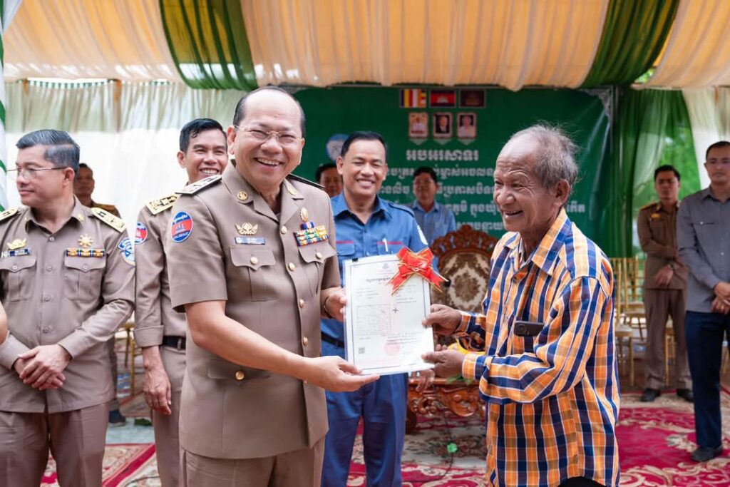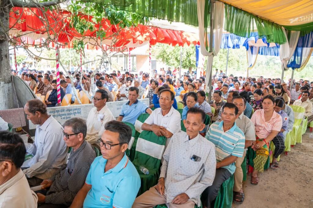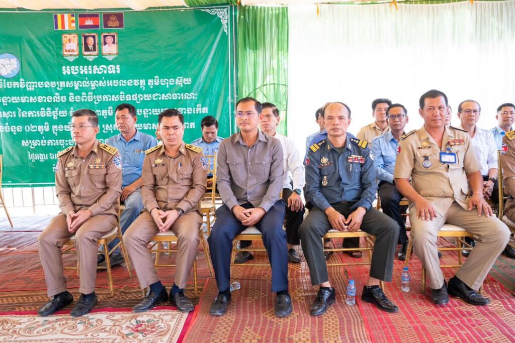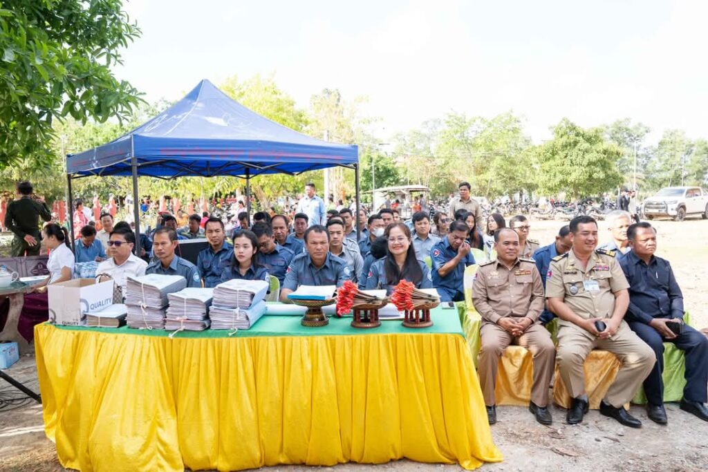 ព្រឹកថ្ងៃទី៤ ខែមីនា ឆ្នាំ២០២៥ ឯកឧត្តម ម៉ៅ ធនិន អភិបាលខេត្តកំពត បានអញ្ជើញជាអធិបតីក្នុងពិធីចែកវិញ្ញាបនបត្រសម្គាល់ម្ចាស់អចលនវត្ថុ ភូមិហុងស៊ុយ ឃុំបន្ទាយមាសខាងលិច និងពិធីប្រកាសបិទផ្សាយជាសាធារណៈនូវឯកសារនៃការវិនិច្ឆ័យ ដែលបានចុះបញ្ជីមានលក្ខណៈជាប្រព័ន្ធ ក្នុងភូមិត្រពាំងពោន ភូមិក្រសាំងលើ ភូមិក្រសាំងកម ឃុំបន្ទាយមាសខាងកើត ភូមិទួលក្រសាំង និងភូមិម៉ឹនដាំ ឃុំព្រៃទន្លេ ស្រុកបន្ទាយមាស ខេត្តកំពត ។