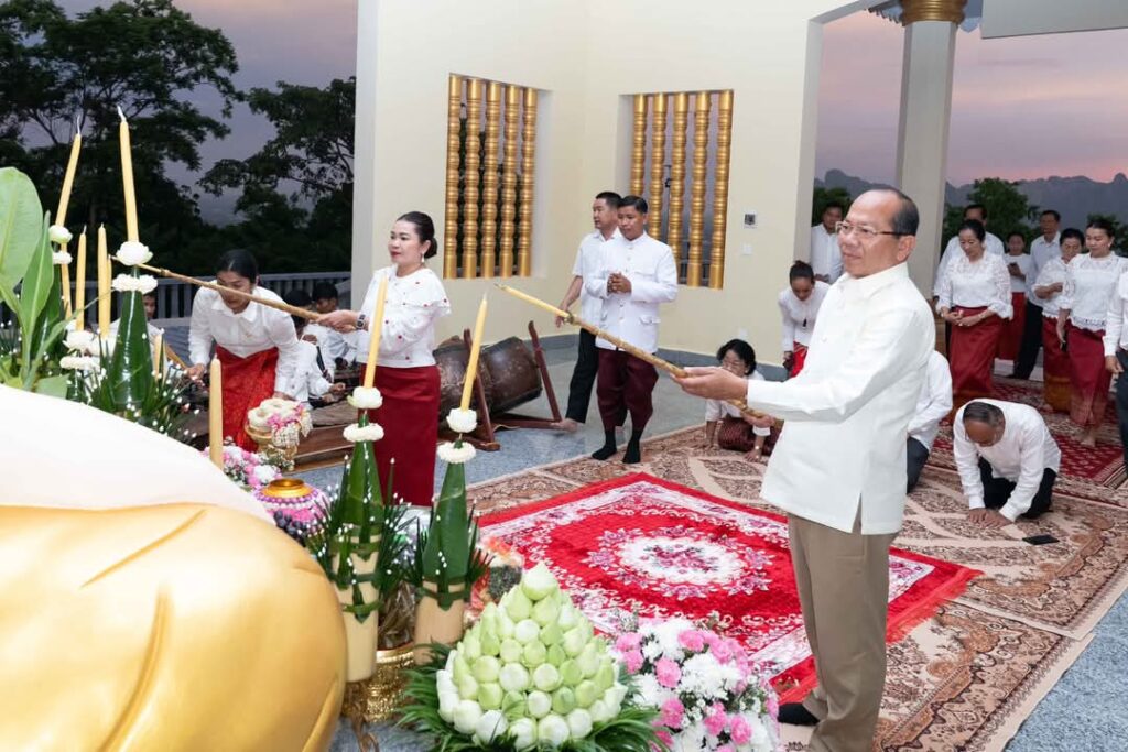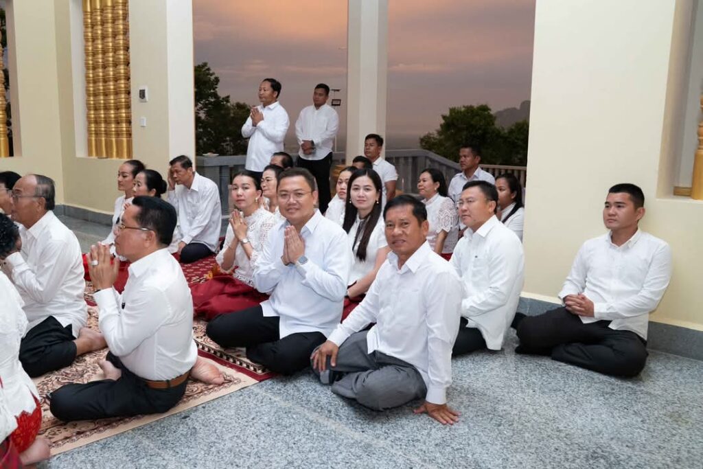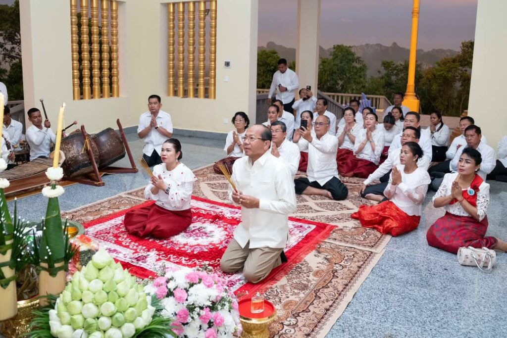 ល្ងាចថ្ងៃទី១១ ខែឧសភា ឆ្នាំ២០២៥ ឯកឧត្តម ម៉ៅ ធនិន អភិបាលខេត្តកំពត និងលោកជំទាវ បានអញ្ជើញអុជធូប ថ្វាយគ្រឿងសក្ការៈ និងផ្ញីផ្កា នៅកន្លែងរូបសំណាកលោកជំទាវម៉ៅ ដើម្បីបួងសួងចម្រើនសេចក្តីសុខជូនដល់ ប្រពលរដ្ឋក្នុងខេត្តកំពត ឲ្យជួបតែសេចក្តីសុខ សេចក្តីចម្រើនគ្រប់ពេលវេលា ដែលពិធីនេះត្រូវបានរៀបចំ ឡើងនៅលើប្រាសាទមាសលោកជំទាវម៉ៅ ស្ថិតក្នុងស្រុកដងទង់ ខេត្តកំពត៕