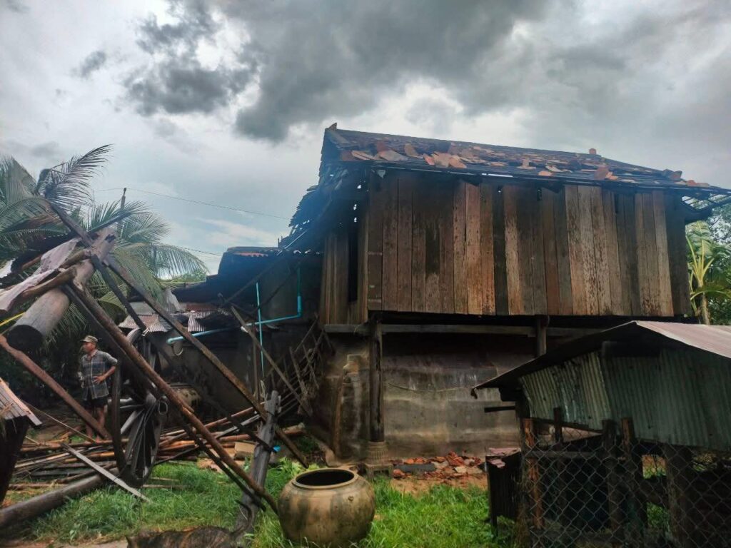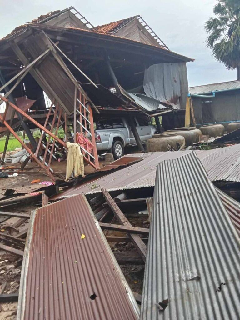 ក្នុងនោះ(ធ្ងន់ធ្ងរចំនួន៣ខ្នង មធ្យមចំនួន៧២ខ្នង និង ខូចខាតស្រាលចំនួន១០៤ខ្នង) ទៅលើឃុំ២មាន ឃុំបន្ទាសមាសខាងកើត១២៨ខ្នងផ្ទះ និងឃុំ បន្ទាយមាសខាងលិចចំនួន ៥១ខ្នងផ្ទះ ។ពិធីនេះ បានរៀបចំធ្វើឡើង នៅក្នុងបរិវេណវត្តបន្ទាយមាស ស្ថិតនៅក្នុង ឃុំបន្ទាយមាសខាងលិច ស្រុកបន្ទាយមាស ខេត្តកំពត ។